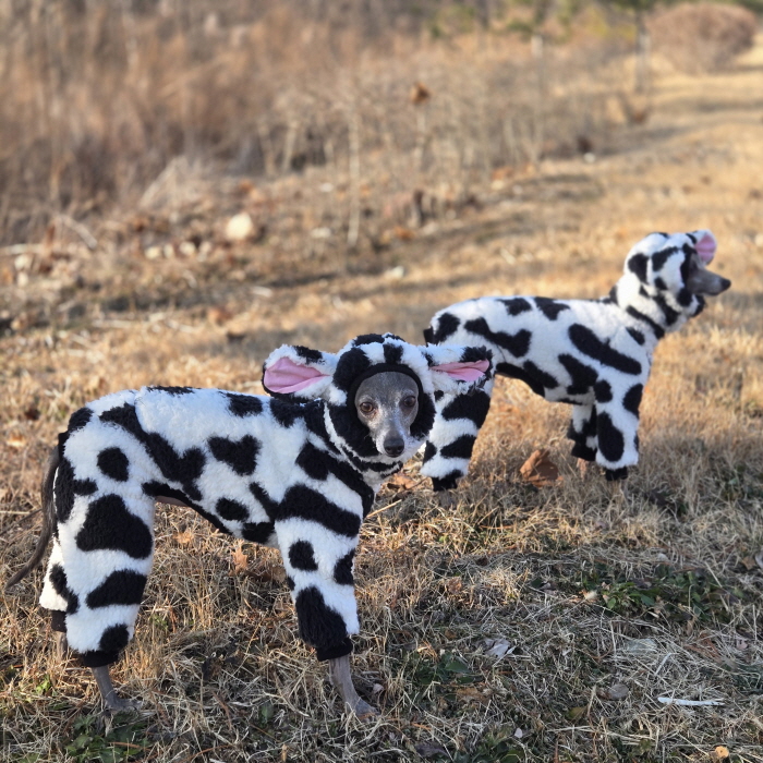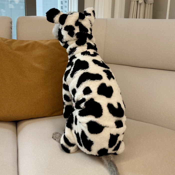 イタグレ服 S M L XL 2XL 3XL ウシさん フリース ロンパース つなぎ 小型犬 中型犬 大型犬 冬服 韓国犬服 doggystar ドッギースター 即日発送出来ます